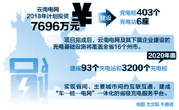 大理、麗江等重點城市開展充電基礎(chǔ)設(shè)施建設(shè),2018年計劃投資7696萬元,建設(shè)充電樁403個、充電站6座,待2018年新增投資項目完成后,云南電網(wǎng)公司及其下屬企業(yè)建設(shè)的充電基礎(chǔ)設(shè)施將覆蓋全省16個州市。