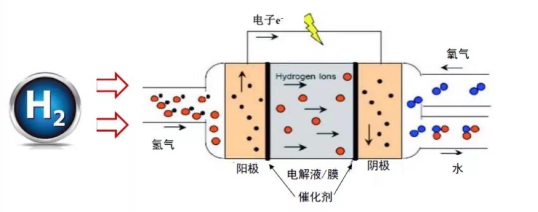 氫分子又小又活潑。它透過(guò)質(zhì)子膜時(shí),電子被從分子上剝離,只留下帶正電的氫質(zhì)子通過(guò),氫質(zhì)子被吸引到薄膜另一側(cè)的電極與氧分子結(jié)合。電解質(zhì)薄膜兩側(cè)的電極板將氫氣拆分成氫離子(正電)和電子、將氧氣拆分成氧離子(負(fù)電)和電子,電子在電極板之間形成電流,兩個(gè)氫離子和一個(gè)氧離子結(jié)合成為水,是反應(yīng)的唯一廢物。