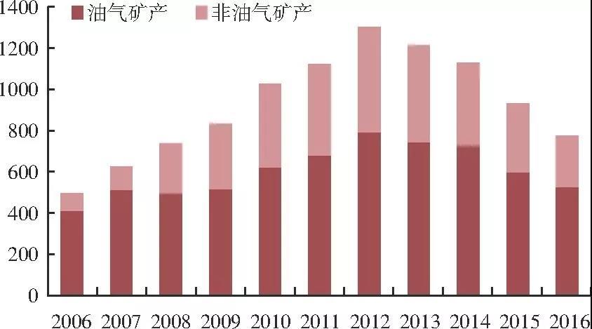 圖6 2006—2016年全國(guó)地質(zhì)勘探投入