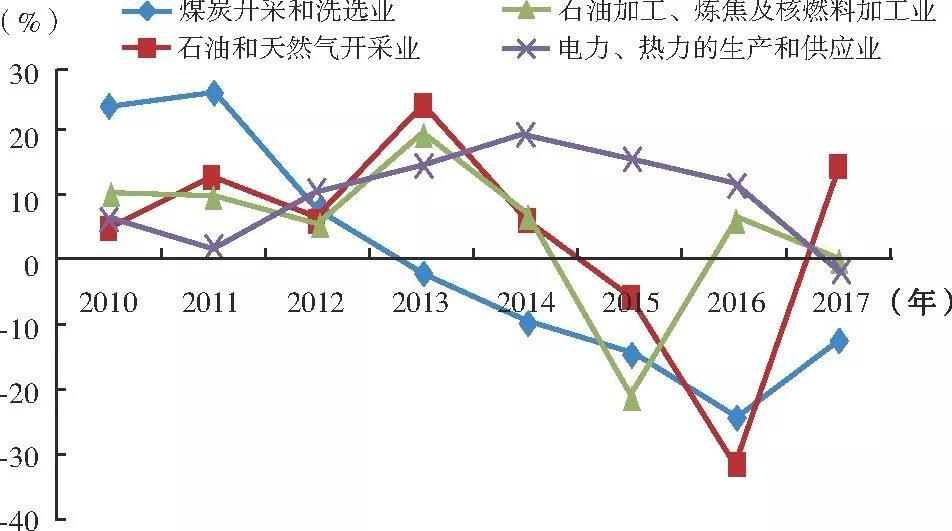 近年來(lái),我國(guó)電力、煤炭開(kāi)采投資增速均出現(xiàn)不同程度的回落。2017年煤炭開(kāi)采和洗選業(yè)全年完成固定資產(chǎn)投資2648億元,同比下降12.3%;電力行業(yè)完成投資9015億元,其中電源工程投資同比下降20.8%,電網(wǎng)投資同比下降2.2%。而受低原油價(jià)格的刺激,石油加工、煉焦及核燃料加工業(yè)早在2016年就開(kāi)始回升,2017年略有下降,降幅為0.1%,石油和天然氣開(kāi)采業(yè)完成投資2649億元,增幅為13.9%。