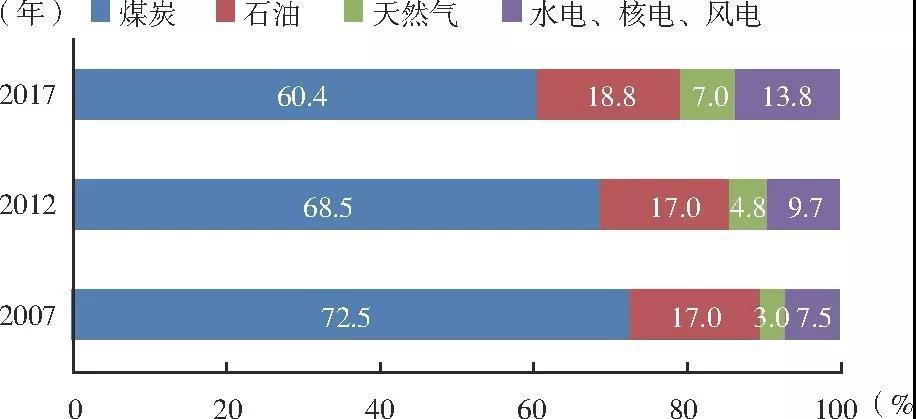 圖3 2007—2017年我國(guó)一次能源消費(fèi)結(jié)構(gòu)變化