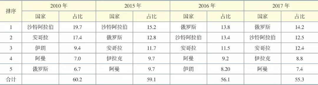 表2 我國(guó)石油進(jìn)口前五位國(guó)家及占比