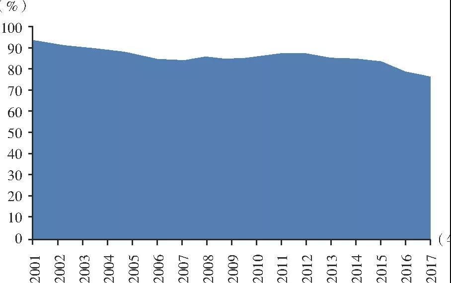 圖1 2001—2017年我國(guó)能源自給率情況