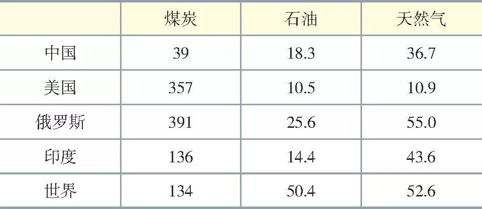 表1 2017年中國(guó)和世界主要國(guó)家能源資源儲(chǔ)采比