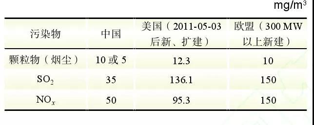 表3 燃煤電廠大氣污染物排放限值比較