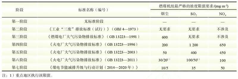 表1 火電廠大氣污染物排放標(biāo)準(zhǔn)或要求發(fā)展歷程
