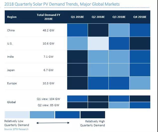 2018年季度全球主要市場太陽能光伏需求趨勢預測