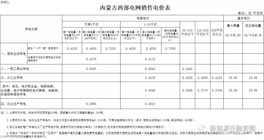 蒙西脫硫煤標(biāo)桿電價(jià):0.2829元/KWh。