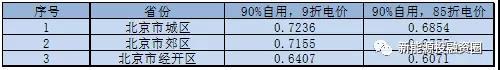 自發(fā)自用項(xiàng)目電價(jià)受尖峰平谷時(shí)間段、電價(jià)、自用比例等因素影響,本文主要測算兩種常見情況:(1)自用比例為90%,EMC能源合同管理里的電價(jià)折扣為9折;(2)自用比例為90%,EMC能源合同管理里的電價(jià)折扣為85折。北京分峰平谷電價(jià),測算結(jié)果見下表。