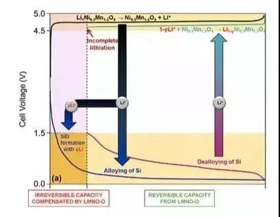 如美國阿貢國家實驗室的Xin Su等人,就通過在LiCoO2正極里添加7%的Li5FeO4(LFO)材料,使得電池的首次效率提高了14%,并顯著的改善了電池的循環(huán)性能。Li5FeO4材料的理論比容量可達700mAh/g,并且?guī)缀跛械娜萘坎豢赡妗?