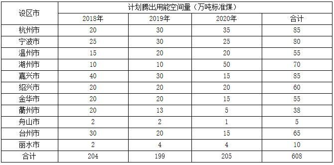 表12018年-2020年設區(qū)市計劃騰出年用能空間表