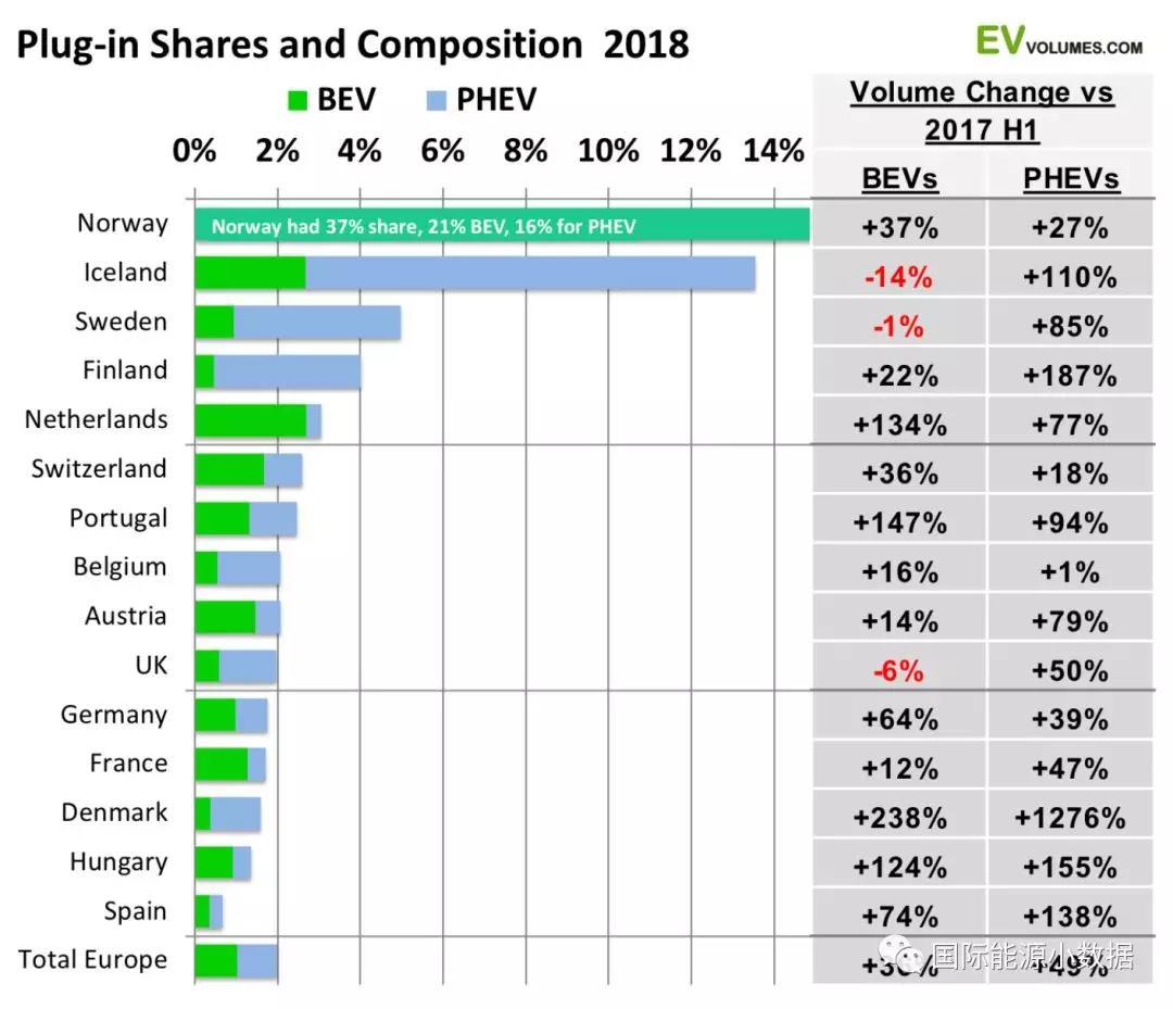 預(yù)計(jì)2018年全年歐洲國(guó)家電動(dòng)汽車銷量可達(dá)43萬(wàn)輛,占汽車市場(chǎng)份額2.35%,年底電動(dòng)汽車存量可達(dá)135萬(wàn)輛(上半年已經(jīng)超過(guò)100萬(wàn)輛)。