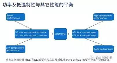 從提高功率和低溫特性的角度來看,希望SEI和CEI盡量薄,不要太致密且導(dǎo)電性要好;但是從提高電池的高溫性能和循環(huán)性能來講,希望CEI和SEI厚一些或者致密一些且強度和韌性要好。
