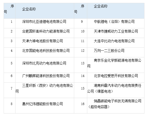 主要內(nèi)容:中汽協(xié)正式公布汽車動(dòng)力蓄電池和氫燃料電池行業(yè)白名單(第一批),共有16家動(dòng)力蓄電池單體生產(chǎn)企業(yè)、3家動(dòng)力蓄電池系統(tǒng)生產(chǎn)企業(yè)和2家氫燃料電池電堆及系統(tǒng)生產(chǎn)企業(yè)進(jìn)入白名單。