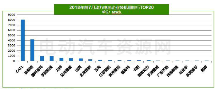 二、2018年前7月動(dòng)力電池裝機(jī)量分析