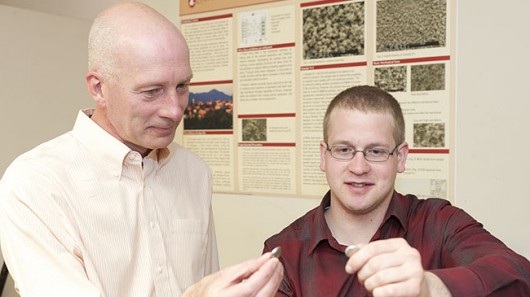 錫陽極創(chuàng)始人格蘭特•諾頓(Grant Norton)教授和學(xué)生,大衛(wèi)•麥凱(David Mackay)。來源:華盛頓州立大學(xué)