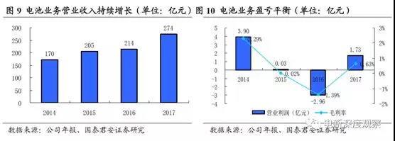 年報數(shù)據(jù)顯示,2017年LG化學電池業(yè)務(包括小型電池、動力電池和ESS電池)收入274億元,占總收入的17%,電池業(yè)務營業(yè)利潤1.73億元。對比來看,近年來公司電池業(yè)務營業(yè)收入持續(xù)增長,但營業(yè)利潤一直處于較低水平,如下圖所示(2016年為負值,2015年和2017年營業(yè)利潤為正,但毛利率接近為0):