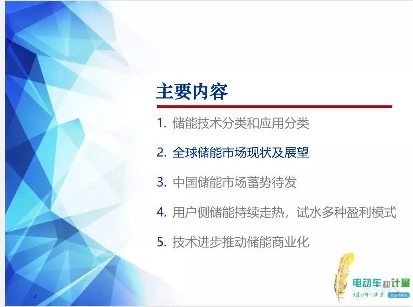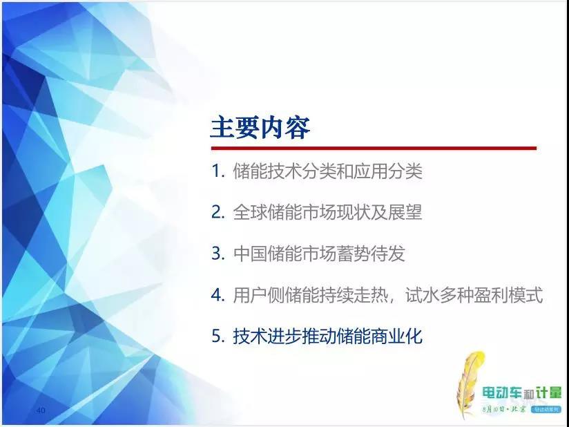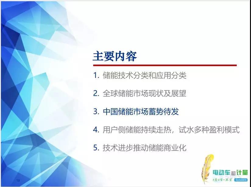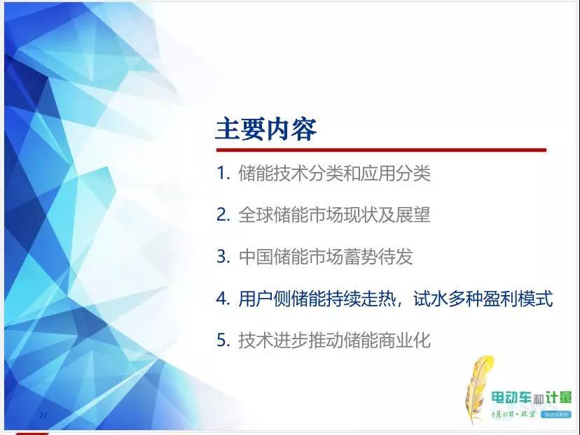 報告主題“用戶側(cè)儲能試水多種盈利模式技術進步推動儲能商業(yè)化”。在傳統(tǒng)電力系統(tǒng)生產(chǎn)模式基礎上增加一個儲能環(huán)節(jié),使原來幾乎完全剛性的系統(tǒng)變得柔性起來,電網(wǎng)運行也更加的靈活。報告全面細致講解了儲能技術及其應用,分析了全球儲能市場,探討了多種儲能市場商業(yè)模式,展望了未來趨勢。
