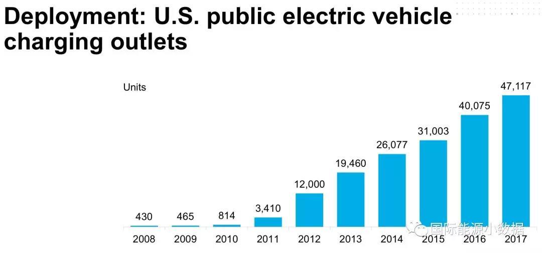 2017年美國共有47,117個為電動車服務(wù)的公共充電樁,比2016年(40,075)增長17.6%,其中有6270快速充電樁(占充電樁總數(shù)的13%)。
