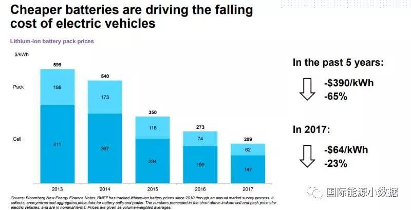 中國儲能網(wǎng)訊:根據(jù)彭博新能源財(cái)經(jīng)的匯總數(shù)據(jù),2017年美國電動車用鋰電池組的成本為209美元/千瓦時(shí),比2016年(273美元/千瓦時(shí))下降23%。