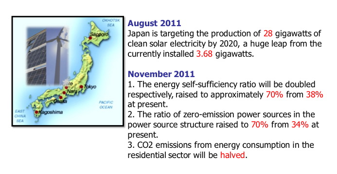 對于日本而言,能源獨立,已是刻不容緩的事情。2011年日本福島大地震之后,核災的問題讓日本開始重視再生能源的實際應用,2012年第一季度甚至開始計劃關(guān)閉所有核電廠,而太陽能將會是未來的重要發(fā)電方式之一。