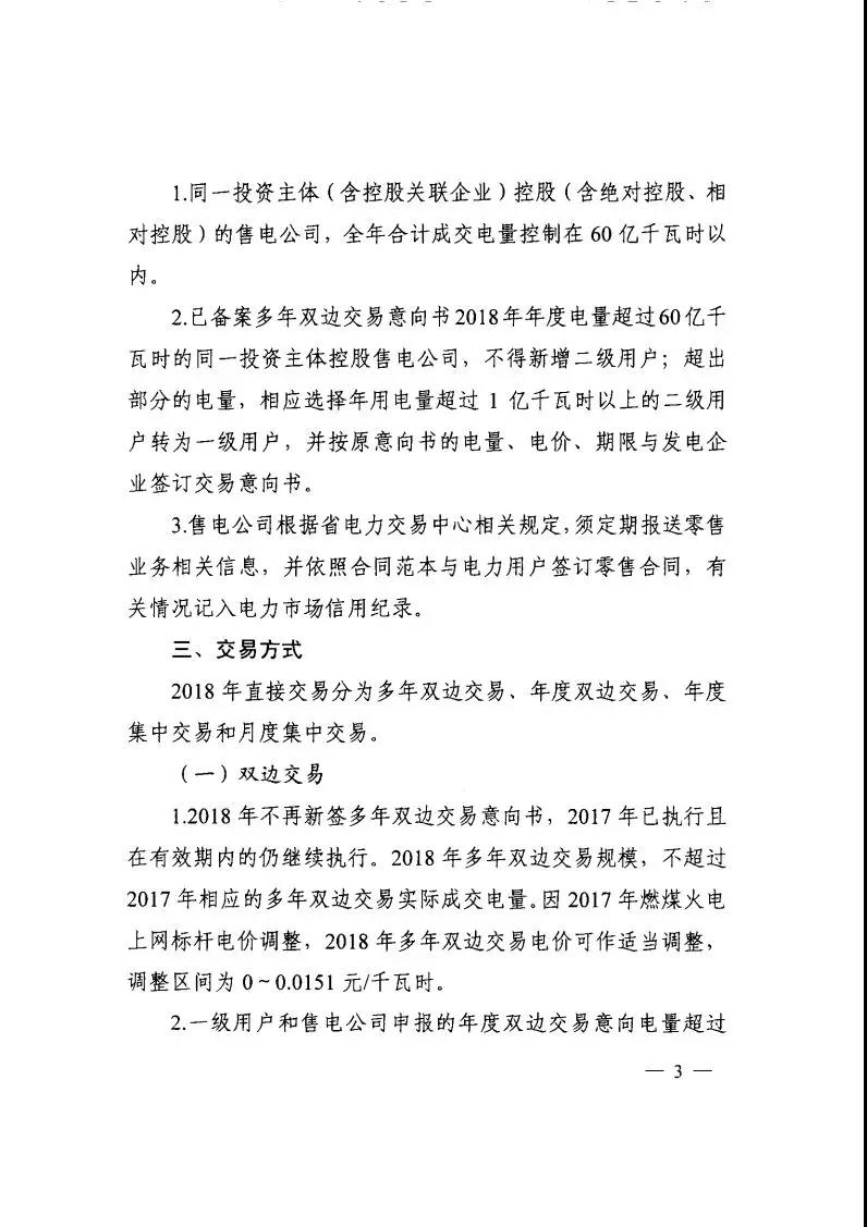 雙邊交易:因2017年燃煤火電上網(wǎng)標(biāo)桿電價(jià)調(diào)整,2018年多年雙邊交易電價(jià)可作適當(dāng)調(diào)整,區(qū)間為0-0.0151元/千瓦時(shí);