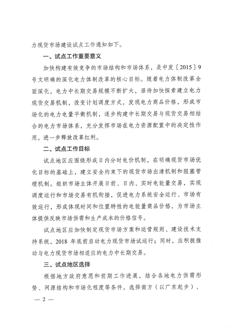 關(guān)于開(kāi)展電力現(xiàn)貨市場(chǎng)建設(shè)試點(diǎn)工作的通知