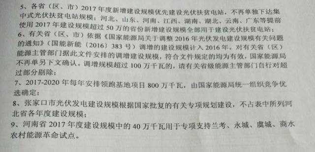 中國儲(chǔ)能網(wǎng)訊:日前,國家能源局出臺(tái)《關(guān)于可再生能源發(fā)展“十三五”規(guī)劃實(shí)施的指導(dǎo)意見》,對(duì)“十三五”期間2017-2020年的光伏發(fā)展規(guī)模進(jìn)行了規(guī)劃。文件指出未來4年(2017-2020)國家能源局規(guī)劃的普通光伏電站指標(biāo)為54.5GW,領(lǐng)跑者項(xiàng)目指標(biāo)為每年8GW(共計(jì)32GW)。同時(shí)規(guī)定甘肅、新疆(含兵團(tuán))、寧夏在棄光率明顯好轉(zhuǎn)之前不做安排;北京、上海、天津、福建、重慶、西藏、海南7個(gè)省市自行管理本區(qū)域“十三五”期間的建設(shè)指標(biāo);分布式光伏、村級(jí)扶貧電站及跨省跨區(qū)輸電通道配套建設(shè)的光伏電站都不包含在本指標(biāo)內(nèi)。