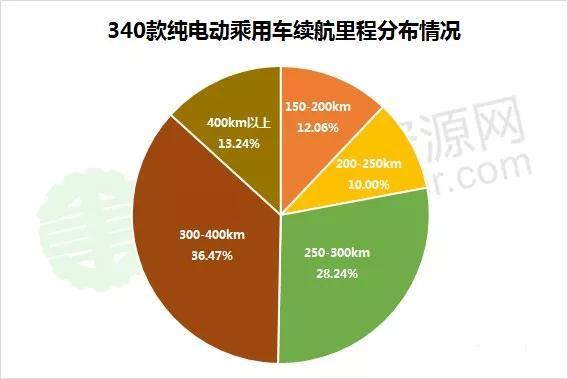 如上圖所示,根據(jù)2018年新能源汽車補(bǔ)貼政策,純電動乘用車將細(xì)分6個檔次進(jìn)行補(bǔ)貼。經(jīng)電動汽車資源網(wǎng)梳理,入圍5、6推薦目錄的340款純電動乘用車中有41款純電動乘用車?yán)m(xù)航里程低于200km,占比12.06%;有34款純電動乘用車?yán)m(xù)航里程在200-250km區(qū)間,占比10.00%;有96款純電動乘用車?yán)m(xù)航里程在250-300km區(qū)間,占比28.24%;有124款純電動乘用車?yán)m(xù)航里程在300-400km區(qū)間,占比36.47%;有45款純電動乘用車?yán)m(xù)航里程高于400km,占比13.24%??傮w來看,入圍5、6推薦目錄中純電動乘用車?yán)m(xù)航里程提升較為明顯,續(xù)航里程高于300km的車型占比已經(jīng)接近50%。
