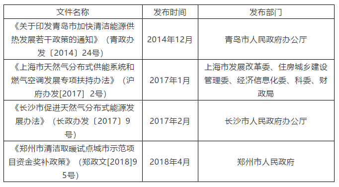 國家層面對于天然氣發(fā)電及燃?xì)饴?lián)供項目有明確補(bǔ)貼支持和數(shù)量要求的政策性文件主要如下表1所示。