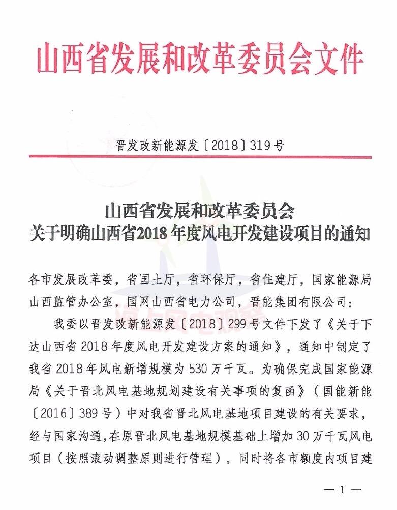 海上風(fēng)電觀察獲悉,6月1日,山西發(fā)改委正式印發(fā)《關(guān)于下達(dá)山西省2018年度風(fēng)電開發(fā)建設(shè)方案的通知》。