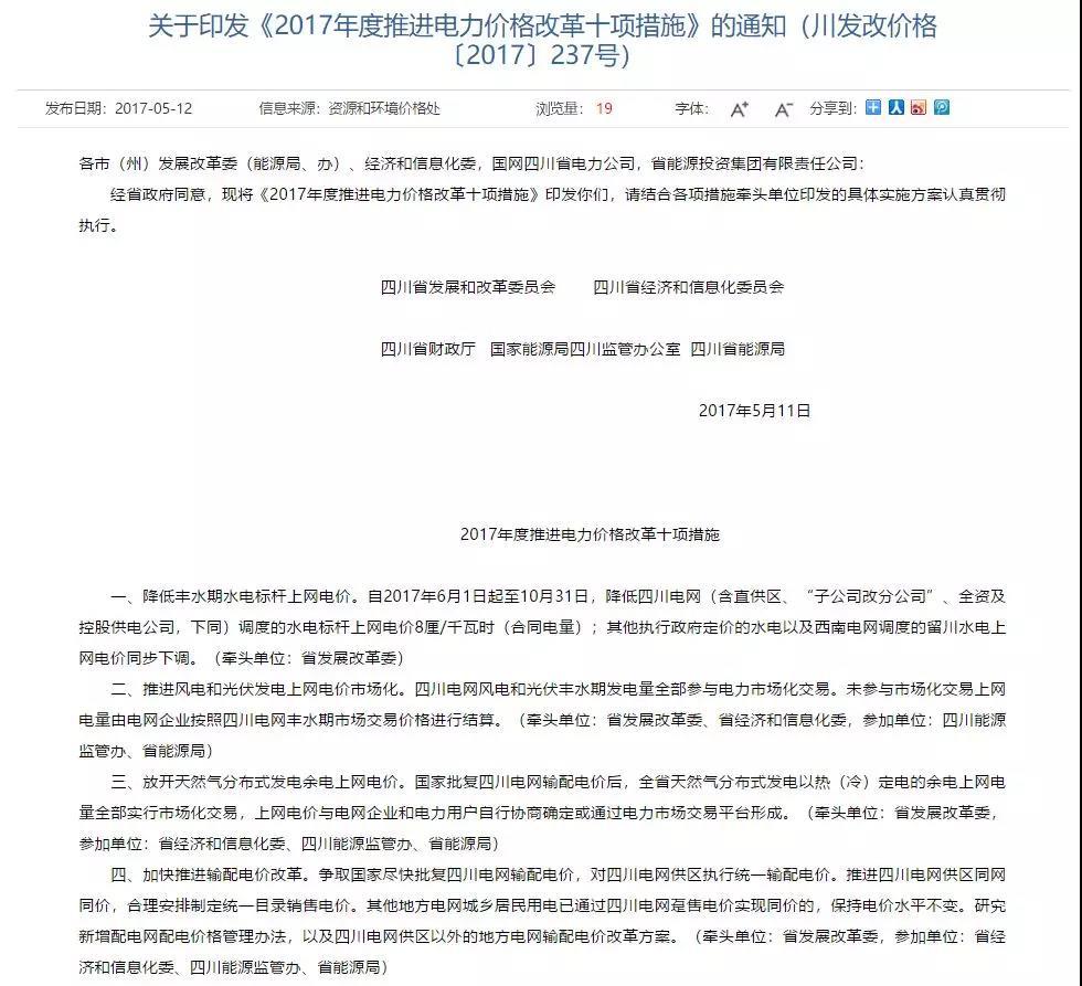 下面是四川省2018年和2017年推進(jìn)電力價(jià)格改革措施的原文件: