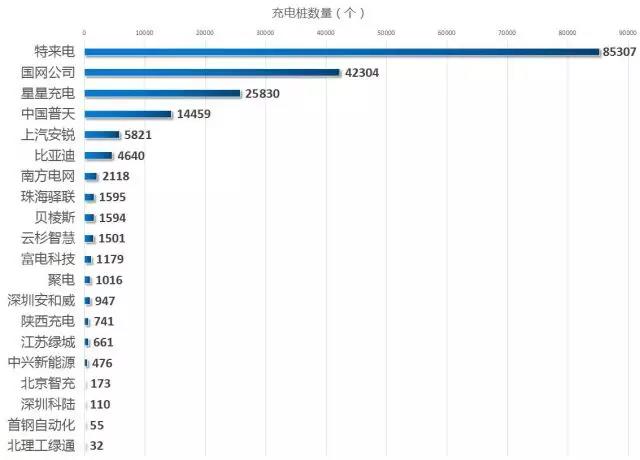 圖3.全國各運營商充電樁總量(截至2017年9月)