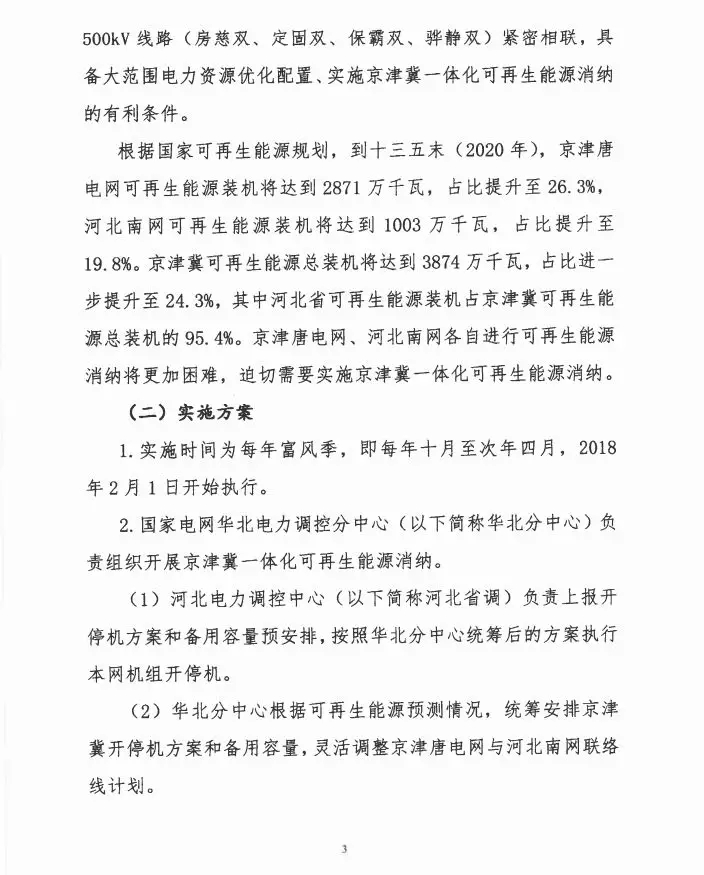 中國儲能網(wǎng)訊:能源小編從河北發(fā)改委獲悉,實施京津冀一體化可再生能源消納時間為每年富風季,即每年十月至次年四月,于2018年2月1日開始執(zhí)行。國家電網(wǎng)華北電力調(diào)控分中心(以下簡稱華北分中心)負責組織開展京津冀一體化可再生能源消納,如不能全額消納時,華北分中心應(yīng)充分發(fā)揮華北電網(wǎng)的作用,實施跨省消納。若區(qū)域內(nèi)仍無法消納,向國調(diào)申請跨區(qū)域消納。