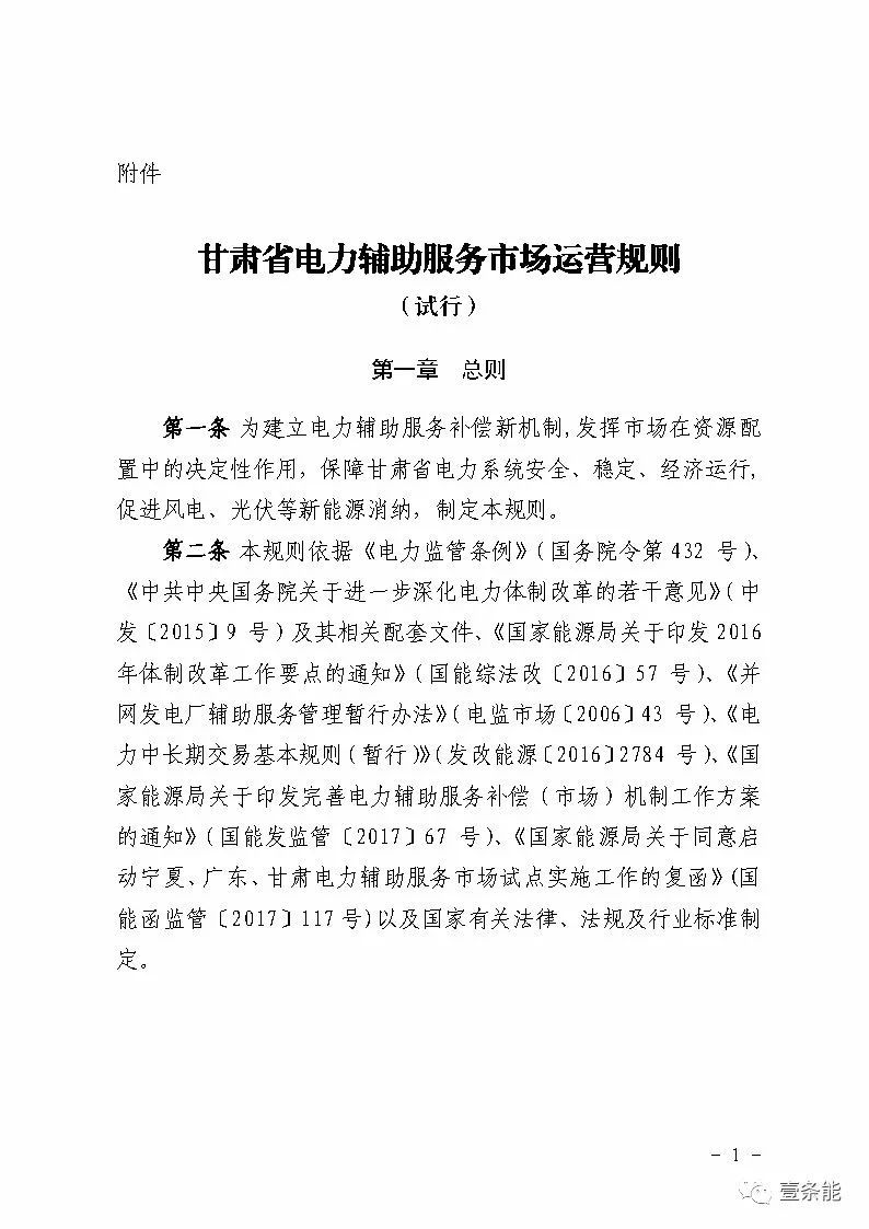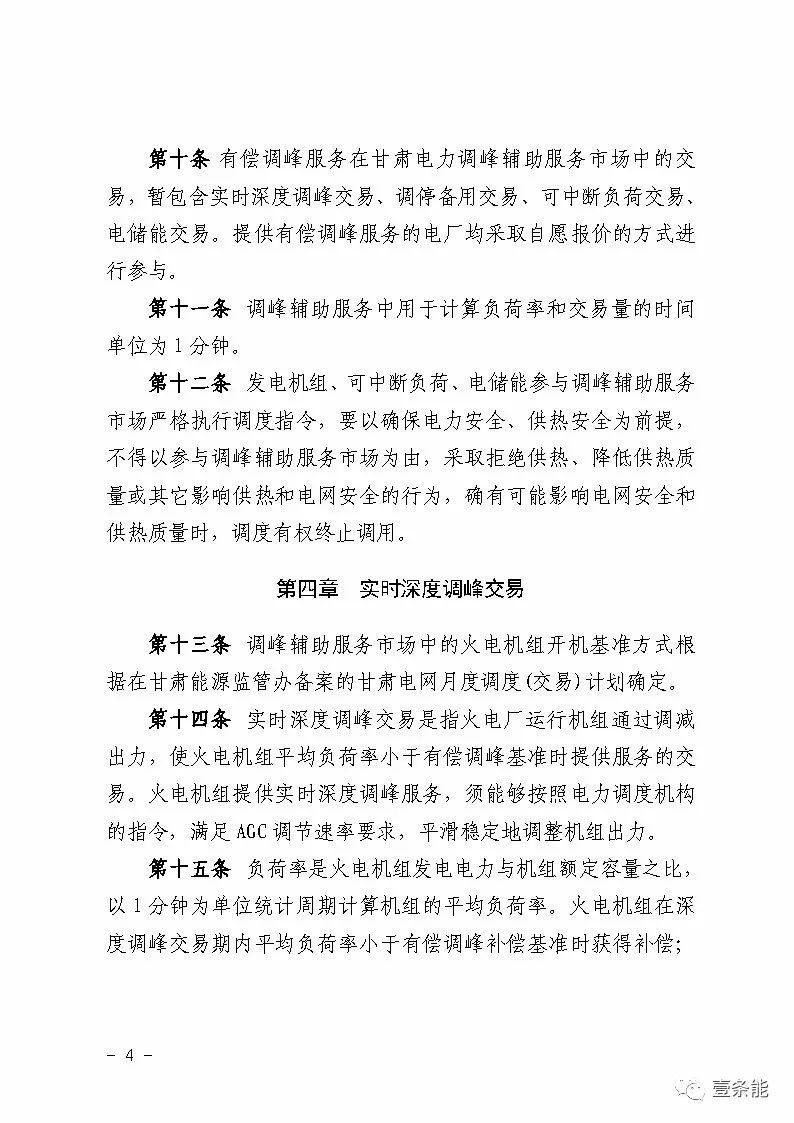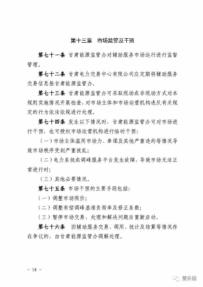 中國儲(chǔ)能網(wǎng)訊:國家能源局甘肅監(jiān)管辦日前發(fā)布了《甘肅省電力輔助服務(wù)市場(chǎng)運(yùn)營(yíng)規(guī)則(試行)》,于2018年4月1日起執(zhí)行。電力輔助服務(wù)市場(chǎng)的市場(chǎng)主體為已取得發(fā)電業(yè)務(wù)許可證的省內(nèi)發(fā)電企業(yè)(包括火電、水電、風(fēng)電、光伏),以及經(jīng)市場(chǎng)準(zhǔn)入的電儲(chǔ)能和可中斷負(fù)荷電力用戶。自備電廠可自愿參與電力輔助服務(wù)市場(chǎng)。網(wǎng)留非獨(dú)立電廠暫不參與電力輔助服務(wù)市場(chǎng)。自發(fā)自用式分布式光伏、扶貧光伏暫不參與電力輔助服務(wù)市場(chǎng)。