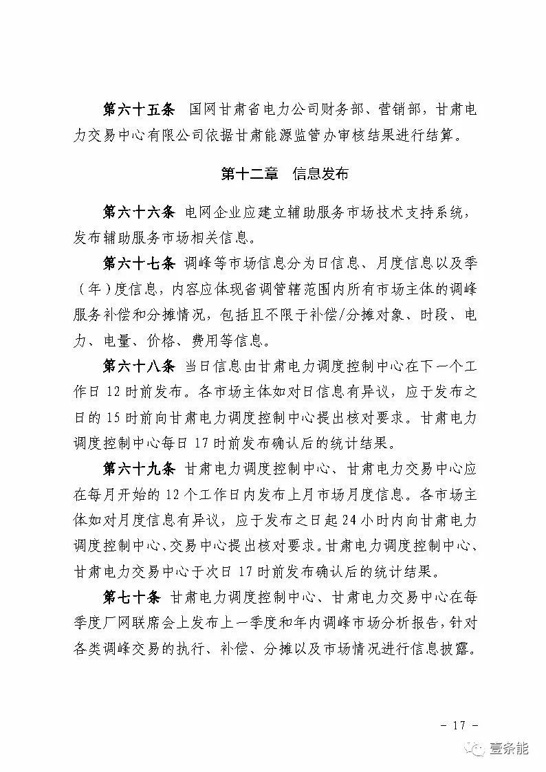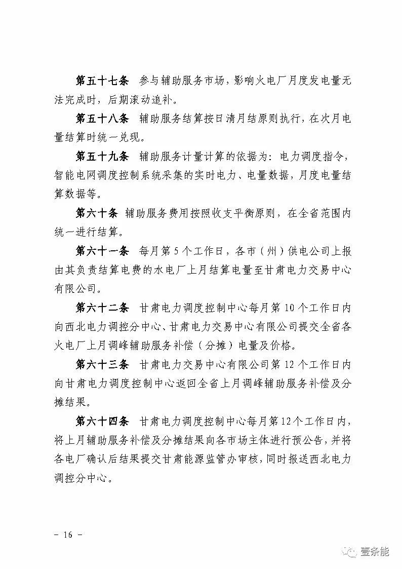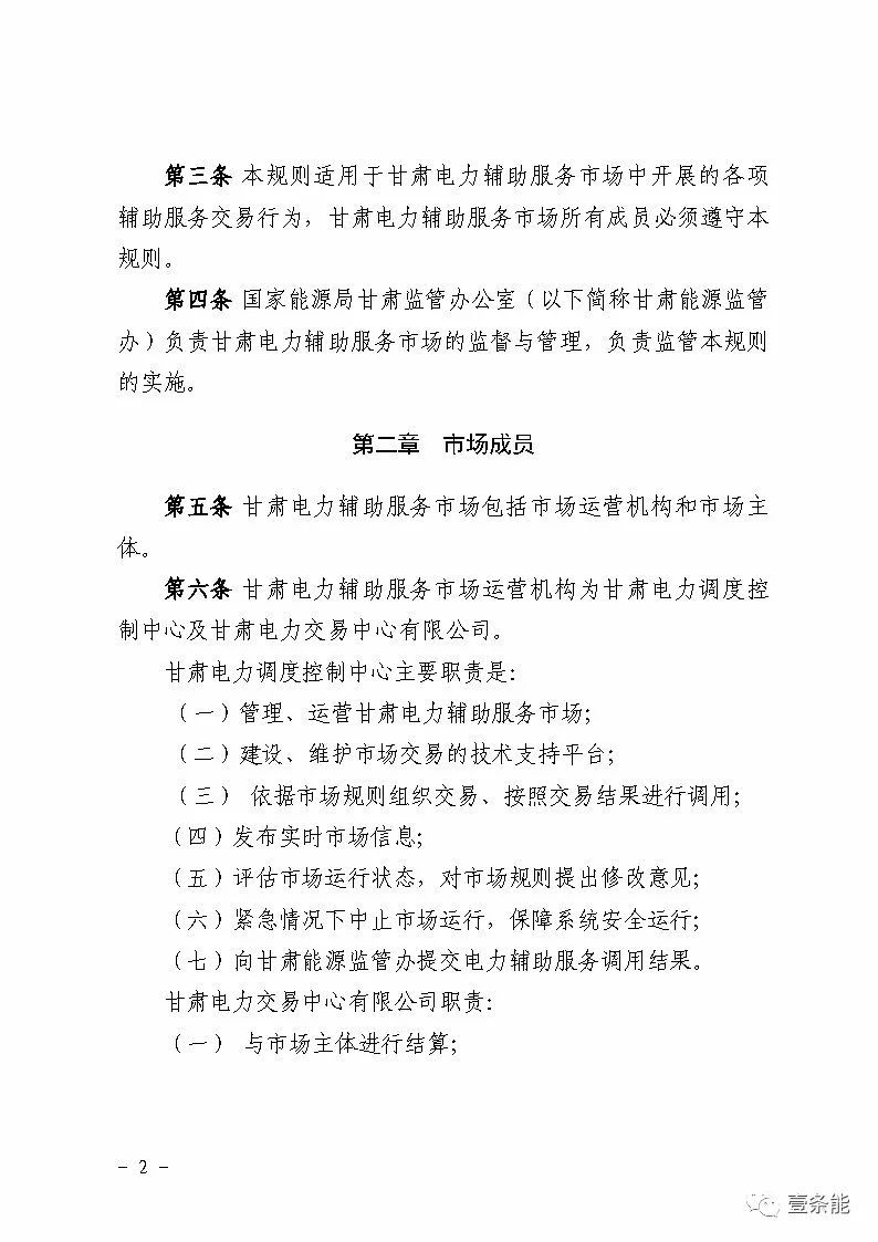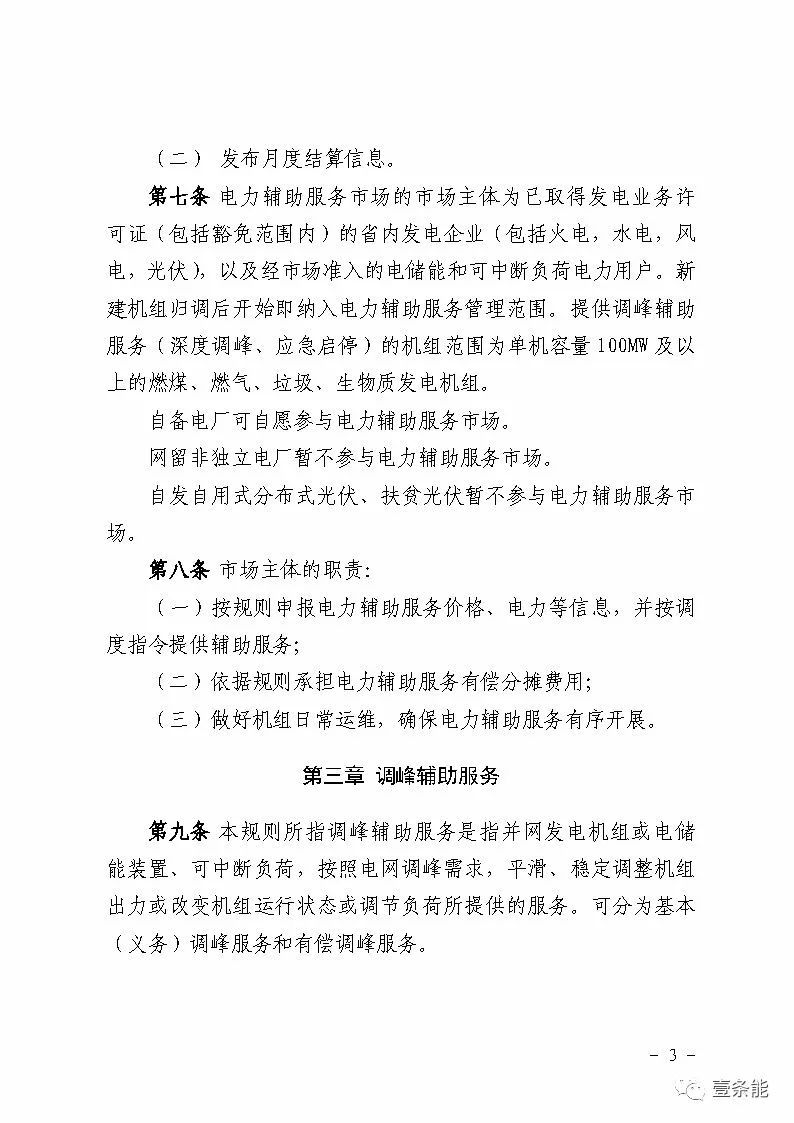 中國儲(chǔ)能網(wǎng)訊:國家能源局甘肅監(jiān)管辦日前發(fā)布了《甘肅省電力輔助服務(wù)市場(chǎng)運(yùn)營(yíng)規(guī)則(試行)》,于2018年4月1日起執(zhí)行。電力輔助服務(wù)市場(chǎng)的市場(chǎng)主體為已取得發(fā)電業(yè)務(wù)許可證的省內(nèi)發(fā)電企業(yè)(包括火電、水電、風(fēng)電、光伏),以及經(jīng)市場(chǎng)準(zhǔn)入的電儲(chǔ)能和可中斷負(fù)荷電力用戶。自備電廠可自愿參與電力輔助服務(wù)市場(chǎng)。網(wǎng)留非獨(dú)立電廠暫不參與電力輔助服務(wù)市場(chǎng)。自發(fā)自用式分布式光伏、扶貧光伏暫不參與電力輔助服務(wù)市場(chǎng)。
