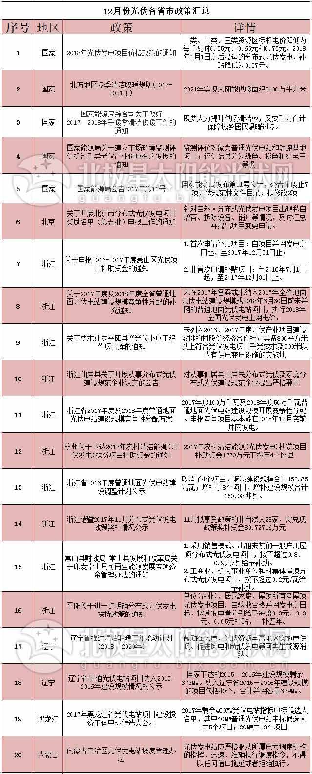 中國儲能網(wǎng)訊:近日,國家能源局發(fā)布統(tǒng)計數(shù)據(jù)顯示,截至2017年11月底,我國光伏累計裝機容量達125.79GW,同比增長67%。2017年1-11月我國光伏新增裝機容量達48.37GW。預計2017年全年裝機量達50GW以上。在僅剩的短短一個月時間里,有哪些地區(qū)發(fā)布政策積極促進光伏發(fā)展呢?