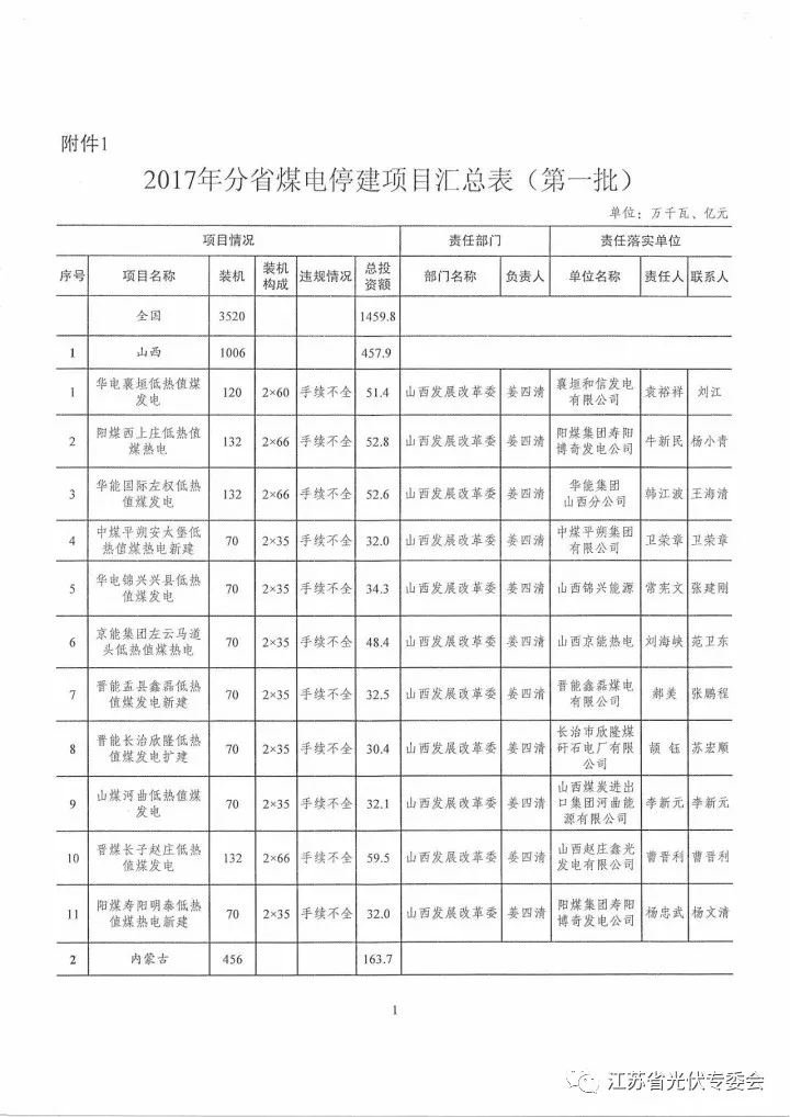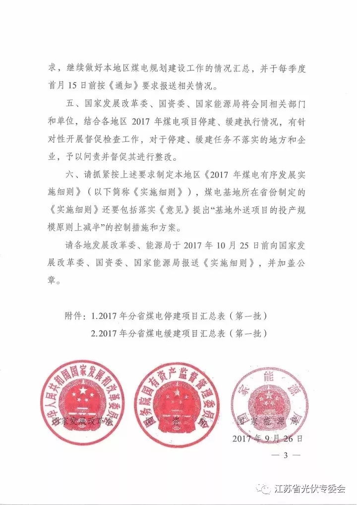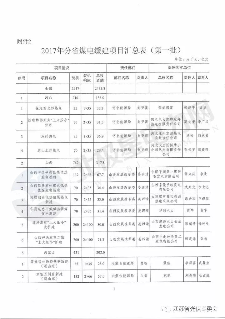 中國儲(chǔ)能網(wǎng)訊:為有力有序有效防范化解煤電產(chǎn)能過剩風(fēng)險(xiǎn),確保完成2017年《政府工作報(bào)告》提出的煤電調(diào)控目標(biāo)任務(wù),按照《關(guān)于推進(jìn)供給側(cè)結(jié)構(gòu)性改革 防范化解煤電產(chǎn)能過剩風(fēng)險(xiǎn)的意見》(發(fā)改能源[2017]1404號(hào))等相關(guān)文件要求,9月26日,國家發(fā)展和改革委員會(huì)、國務(wù)院國有資產(chǎn)監(jiān)督管理委員會(huì)、國家能源局聯(lián)合印發(fā)《2017年分省煤電停建和緩建項(xiàng)目名單的通知》,其中: