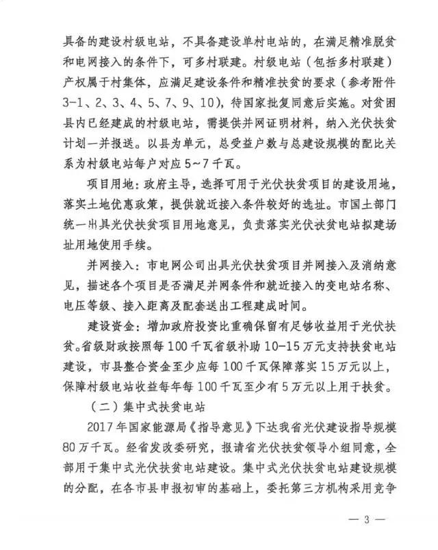 通知要求集中式光伏扶貧電站按照政府投資入股、按股分成的資產(chǎn)收益模式建設(shè),保障電站收益每年每100千瓦至少有5萬元以上用于扶貧。