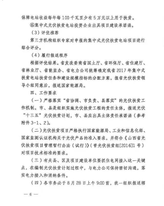 山西省”十三五“光伏扶貧計(jì)劃編制工作的通知