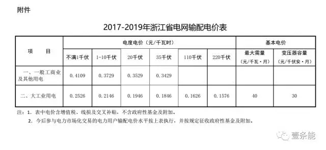 附件:2017-2019年浙江省電網(wǎng)輸配電價表