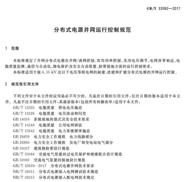 《分布式電源并網(wǎng)運(yùn)行控制規(guī)范》發(fā)布