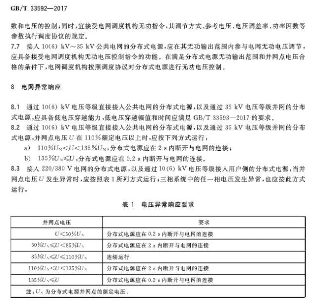 中國(guó)儲(chǔ)能網(wǎng)訊:近日,由國(guó)家標(biāo)準(zhǔn)化委員會(huì)頒布了《分布式電源并網(wǎng)運(yùn)行控制規(guī)范》,標(biāo)準(zhǔn)規(guī)定了分布式電源在并網(wǎng)/離網(wǎng)控制、有功功率控制、無(wú)功電壓調(diào)節(jié)、電網(wǎng)異常響應(yīng)、電能質(zhì)量檢測(cè)等方面的要求。該標(biāo)準(zhǔn)的發(fā)布日期為2017年05月12日,預(yù)計(jì)今年12月起開(kāi)始實(shí)施。