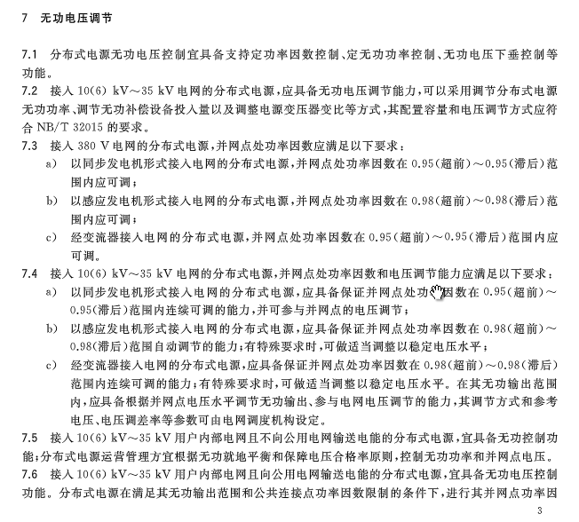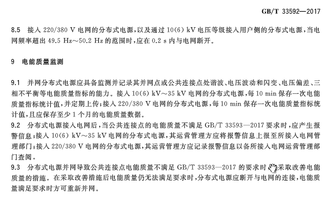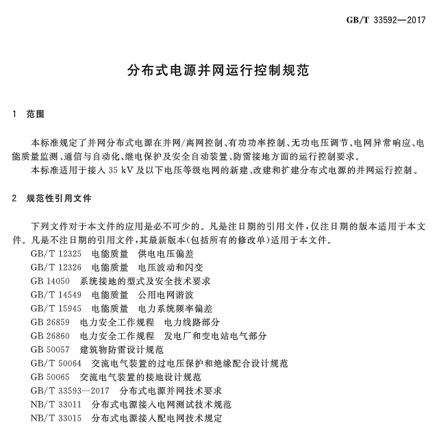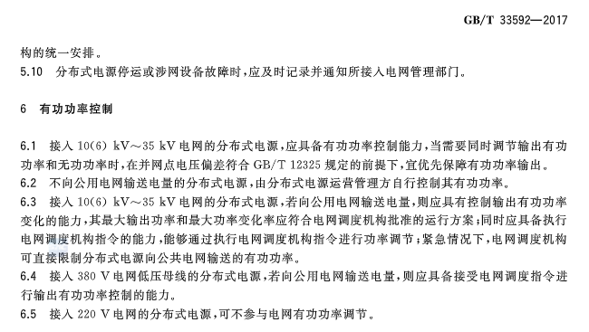 中國(guó)儲(chǔ)能網(wǎng)訊:近日,由國(guó)家標(biāo)準(zhǔn)化委員會(huì)公開(kāi)了《分布式電源并網(wǎng)運(yùn)行控制規(guī)范》,標(biāo)準(zhǔn)規(guī)定了分布式電源在并網(wǎng)/離網(wǎng)控制、有功功率控制、無(wú)功電壓調(diào)節(jié)、電網(wǎng)異常響應(yīng)、電能質(zhì)量檢測(cè)等方面的要求。該標(biāo)準(zhǔn)的發(fā)布日期為2017年05月12日,預(yù)計(jì)今年12月起開(kāi)始實(shí)施。