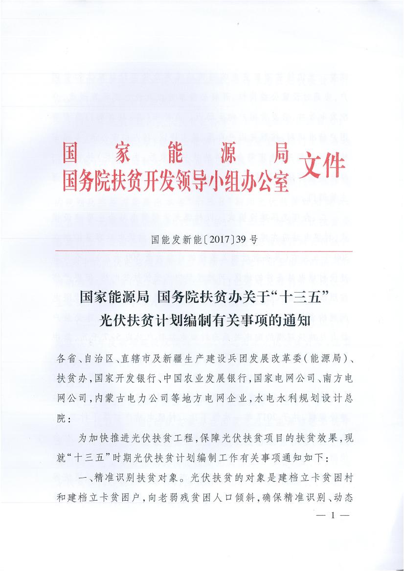 國(guó)家能源局 國(guó)務(wù)院扶貧辦關(guān)于“十三五”光伏扶貧計(jì)劃編制有關(guān)事項(xiàng)的通知