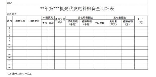 附件5:《**年第*批光伏發(fā)電補貼資金明細表》(詳見配圖)