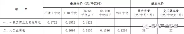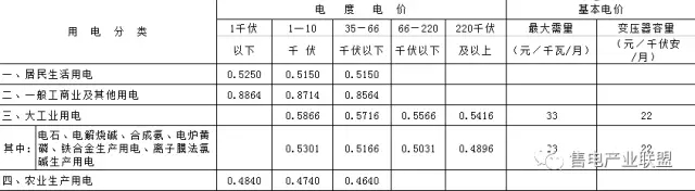 注:1.表中電價(jià)含增值稅、線損及交叉補(bǔ)貼,不含政府性基金及附加。