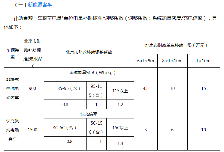補(bǔ)助金額=車輛帶電量*單位電量補(bǔ)助標(biāo)準(zhǔn)*調(diào)整系數(shù)(調(diào)整系數(shù):系統(tǒng)能量密度/充電倍率),具體如下: