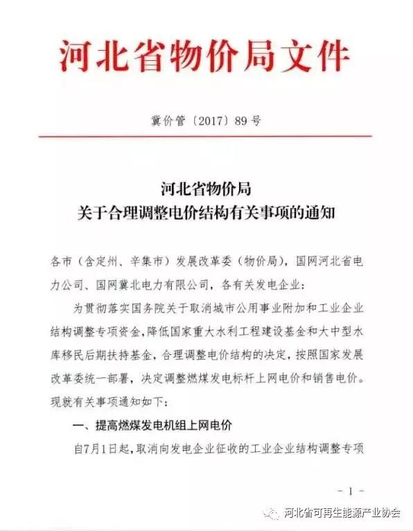 提高燃煤發(fā)電機(jī)組上網(wǎng)電價(jià):取消向發(fā)電企業(yè)征收的工業(yè)企業(yè)結(jié)構(gòu)調(diào)整專項(xiàng)資金。將南、北電網(wǎng)燃煤發(fā)電機(jī)組上網(wǎng)電價(jià)每千瓦時(shí)分別提高1.47分、0.86分。調(diào)整后的燃煤發(fā)電機(jī)組標(biāo)桿上網(wǎng)電價(jià)(含脫硫、脫硝和除塵)分別為0.3644元、0.372元。