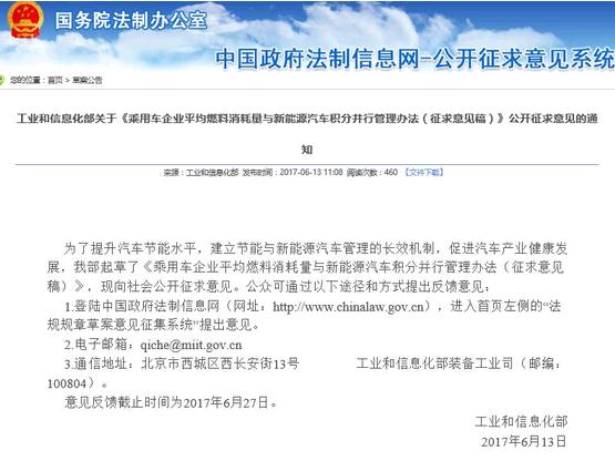 中國儲能網(wǎng)訊:6月13日,工信部網(wǎng)站和國務(wù)院法制辦公室網(wǎng)站同時發(fā)布了《乘用車企業(yè)平均燃料消耗量與新能源汽車積分并行管理辦法(征求意見稿)》(以下簡稱《辦法》),從標(biāo)題可以看出,前段時間爭論許久的并行還是獨立的雙積分管理,最終確定了并行管理方式。